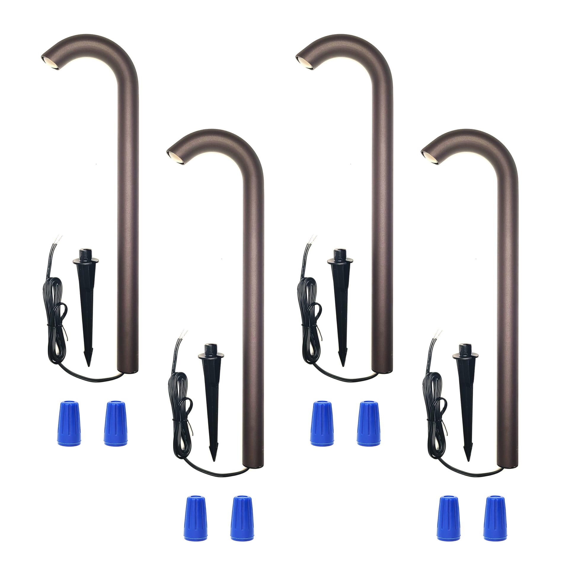 3W LED Landscape Bollard Path Light, Modern Curved Design, 12V Low Voltage, IP67 Waterproof, for Pathways, Driveways and Walkways, Brown Finish (4 Pack)