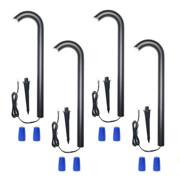 3W LED Landscape Bollard Path Light, Modern Curved Design, 12V Low Voltage, IP67 Waterproof, for Pathways, Driveways and Walkways, Black Finish (4 Pack)